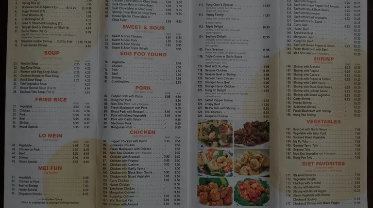 Great restaurant. Ordered on Xmas day as I was alone and doing house projects. Food was piping hot, delivered quick and delicious. Will def be ordering again. Large Hot & Sour soup and Triple Crown in Garlic Sauce. Medium spice, excellent flavors.