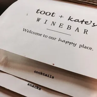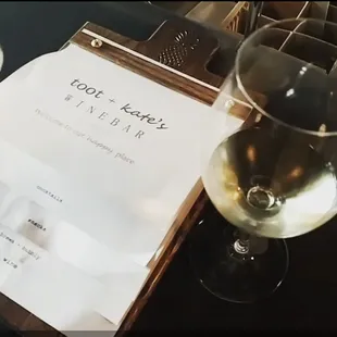 Toot + Kate's Winebar was a great end to a long day at work. There 4 areas with semi secluded seating 5 if your counting the 2 tables in the back and's there is barstool seating. Toot + Kate's has a selection of 8 red wines and 8 white s or other. They provide a large container of water in the back with glasses, and have liquor behind the bar for other drinks. How it works: You go to the bar and request a card for wine, they request a credit card in exchange. You pay at the end.I would highly recommend they collect $20 cash in the beginning for cash customers and note it on the card account. "prepaid 20"The couch in the center of the room is so comfortable and probably currently my favorite location to sit. Though it was nice looking at the items on the Etsy shelves.