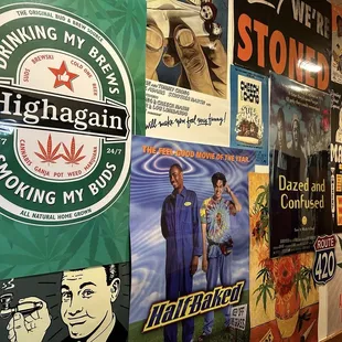 a wall with posters and a television