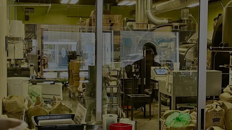 Merch for sale and a view of what I believe to be the roasters.