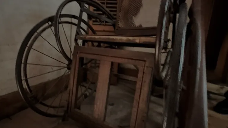 Second floor museum with period things from its past.