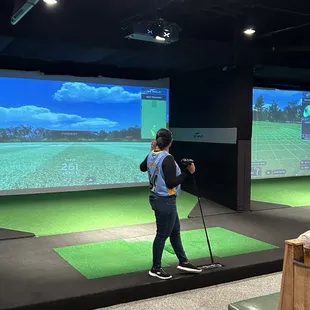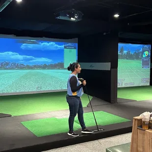 OMG, what a great venue to watch a Milwaukee Brewers game. Several golf simulators for you to brush up on your game. PGA pros on hand to assist. Great view of the Brewer game for those that would like to watch that instead. Not a bad seat from up here. Everyone on staff was very polite and attentive. Definitely a one of a kind experience for me.
