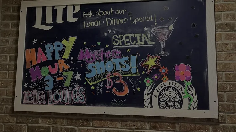 Living within minutes of Big Louie's, my husband and I finally got around to visiting and trying it out! We came hungry and thirsty - VERY pleased to see their happy hour went to 7 on Monday-Friday! You can't beat the prices for drinks and apps, see the picture I attached to this review. The parking lot was mostly full, although we found parking right away. Upon walking in, it was busy but we got seated in minutes. My husband ended up getting the daily special, also attached as a picture to this review, and was very pleased with the taste, size, and price. We got the spinach dip as an happy hour app and the cost was great and the taste has had us craving it since we ate it, every last bit. The potato skins I ordered were tasty, and lots of them! Plus lots of toppings included. We will be back and continue to watch for their specials on their Facebook page!