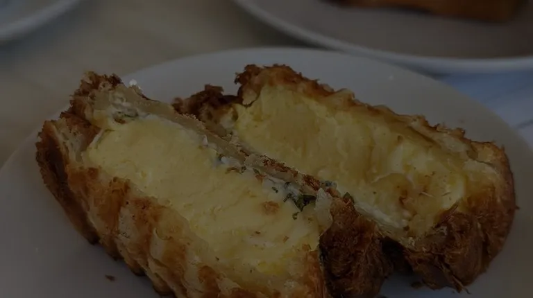 A delicious treat at a cozy cafe/bakery. This place was packed on a Saturday, but the line went quickly. All the pastries looked phenomenal - especially the croissant loaf. Orders:Apple filled pastry (Apple fritter?): I actually can't remember what it's called, but it was very good. Not too sweet. Soft and flakey. Hot oat milk matcha latte: satisfying to drink and look at.Next time, I REALLY want to try the breakfast sandwiches. There were so many people ordering it - def felt like I was missing out. Next time~