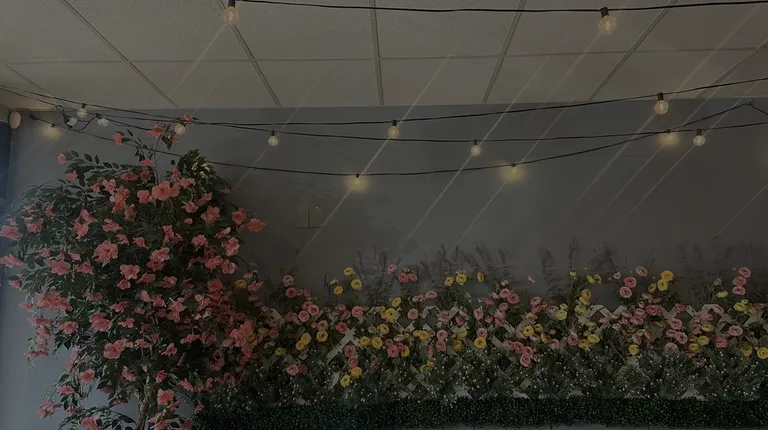 a wall of flowers and vines