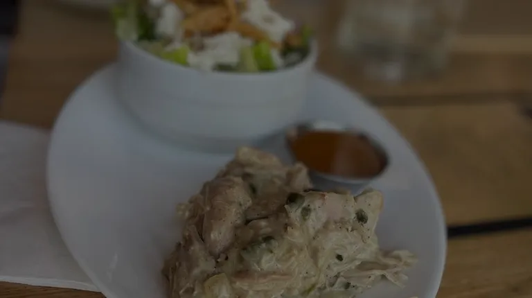 Smothered chicken with side salad