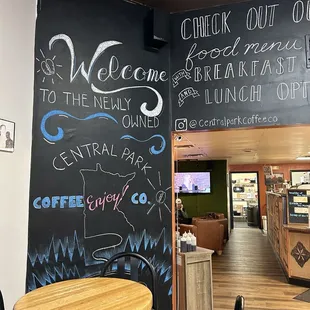 the menu for the coffeehouse