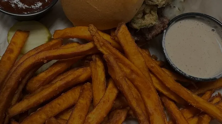 Two Pieces of Apple Fritter French Toast; Two Pieces of Bacon or Sausage. Choice of Breakfast Potatoes or Hash Browns