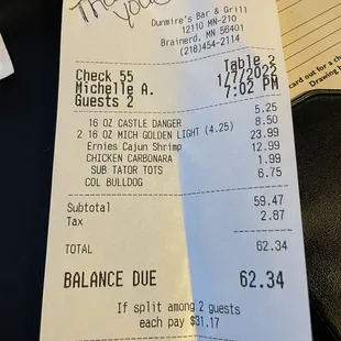 I recently moved to the area. Tried Dunmires for the first time. I ordered a spinach dip for an appetizer. The cheese was clumped together on the top and crunchy. The rest of the dip didn't have much flavor. I also ordered the smallest prime rib. It was a little fattier than I would have hoped for but was still good. The reason why I won't be excited to go back is the service. I sat at the bar to eat. I felt like I had to flag down the bartender if I wanted anything, like to order or check out, even though she was checking on the guests right next to me. I felt like a burden for her.. I am a former server so I'm usually pretty tolerant but definitely felt ignored tonight.