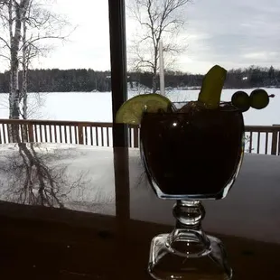 Went snowmobiling one day on the trails and came across this awesome gem. I can't say enough on how friendly the owner is. She is great. The place is also amazing . Great views of the lake. They even offered us free tacos on Sunday. I will definitely be going back whenever I'm in town. Did I mention the Bloody Mary's are the best and very reasonably priced. Can't wait for summer to sit on the terrace.