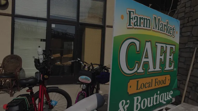 Farm Market Cafe, seen from the Soo Line Trail Bridge over Highway 169