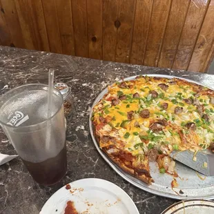 One of the best experiences at a restaurant. The owner is so down to earth. A true treasure in this world. He brought me some free breadsticks and even an awesome fat boy coozie! The owner and staff have such a great fun relationship. The place was recommended by the gmc dealer in bloomer, and I am so glad I stopped. Made my day! The pizza is made with home made crust, and I got the j.r special. Definitely a great family run restaurant with good good people.