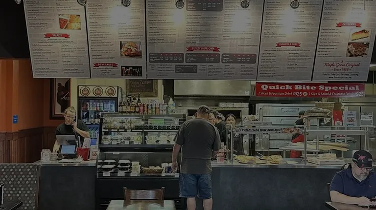 Staff is nice and quick. Got 2 slices of pizza and wings. The sausage slice was ok, the Frankie's slice was decent too, nothing new. But the wings are amazing. I'd rather go here for wings than Bdubs or wingstop! Overall I will come back