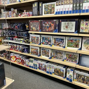 A good place to go check out to buy board games or trading card games. Unfortunately, they do not sell single trading cards. The staff members were friendly, professional, and somewhat knowledgeable about Magic the Gathering (MTG) and Lorcana. It was good that they provided recommendation of other local game stores in the area to help me find a single MTG card and Lorcana Ursula's Return. Overall, I would come back for gaming needs.