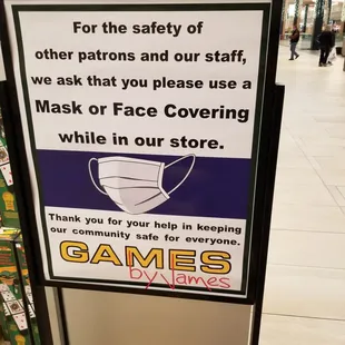 I walked into the Games By James Rosedale store with a full face shield. I was told that I couldn't enter because face shields were not permitted in the store and that I needed a mask. The sign at the door says that a mask or face covering was needed to enter. So what do you think that a face shield that covers the entire face is? That kind of rudeness will be remembered when it comes time for me to buy any products that they sell.