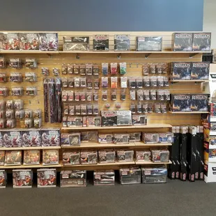 This place is so cool! Upon entering the store, to your left, you have mostly gaming products. They have board games in the back of the store and in the front of the store, they have trading card accessories. I learned that they sell single Magic the Gathering (MTG) cards, but you can search their inventory by using their kiosk. On the right side of the store, they have D&D and Warhammer stuff. Then in the back of the right side of the store contains tables for tournaments and stuff. What I also find cool was they also have fountain drink for sale. The staff member was friendly, professional, and helpful. I think the pricing is competitive with other local gaming stores in the area. Will definitely come back for more gaming needs.