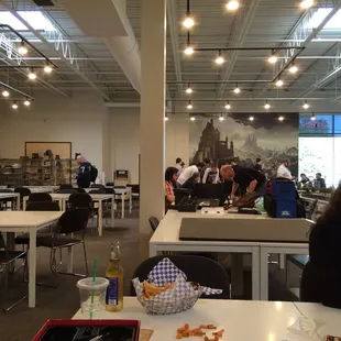 I've been to Fantasy Flight many times and I always have a great time Want to play board games? This place is perfect. Even if you don't have your own, they have an entire wall of free-to-use board games like Cards Against Humanity, Settlers of Catan, Munchkin and many more. Looking to play a table-top RPG like D&D or Warhammer? The entire back section of the building is dedicated to you. But, be sure to check ahead of time because they have frequent tournaments, like what was happening the night I visited, and so you cannot use the back space. Don't be discouraged, though, there are a few tables set in the front of the store as well.But, maybe you're looking to buy a new game. FF has you covered. With an entire side wall and 5+ shelving units dedicated to games for purchase, you can get your board game needs taken care of. They even have a few on display that you can take to a table and try out.But that's not all. They even have a fully functioning kitchen so you can order food while you game. They have things like macaroni and cheese, steak stir fry, grilled cheese, berry scones and more. You can even order specialty coffee and alcohol.If you want to go somewhere for a fun night out with friends, I would highly recommend Fantasy Flight. Don't have friends that want to play board games or tabletop RPGs with you? Check their website for events!! They have weekly D&D gatherings for new players and board game nights.