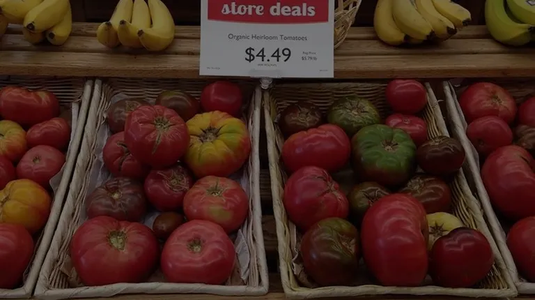 a display of tomatoes and bananas