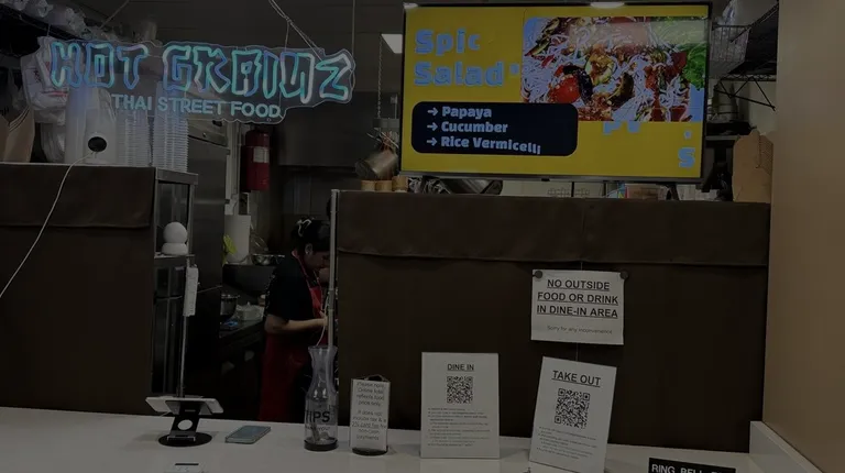 Hot Grainz makes some good Thai food! They're in the large building housing the Asian market. When you arrive you'll have to scan the code and order through their website. You can then grab a seat and they'll bring out the food. There's not many tables available so try visiting on an off hour. The pad kra pow is great but get it as spicy as possible. The spice level of one table spoon is what you should order if you like spice.