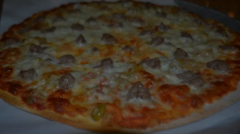 Oven comb- sausage, pepperoni, onions, mushrooms and green olives, this pizza is one of my favorites.