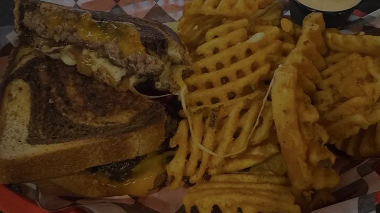 Patty melt with waffle fries