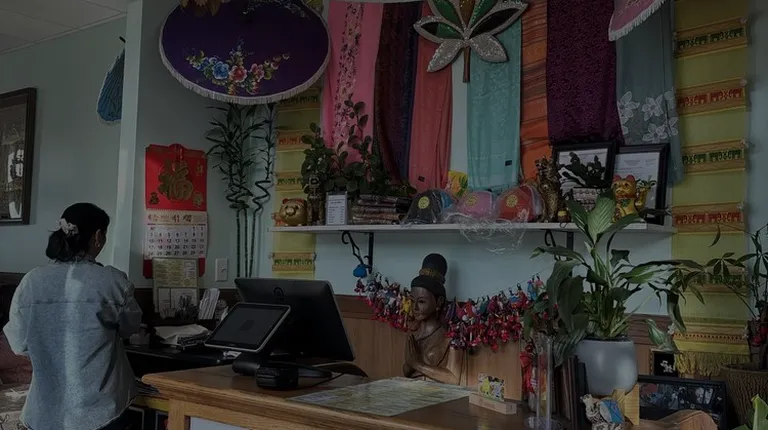 I stumbled upon this super cute, quaint little restaurant while working nearby. Upon entering I was greeted warmly and let to a small table. The bright, fun decor makes the restaurant feel lively, despite the size. From the umbrellas hanging from the ceiling to the colorful tablecloths, this place is adorbs. After glancing over both the lunch and dinner menus, I decided on pad basil stir fry with shrimp and a Thai tea. The lunch menu also includes an app, I chose the chicken egg roll. I was super excited to see kao soi on the menu, it's my favorite Thai dish. Looking forward to coming back for it. My meal was good, but the entree only had 3 small shrimp and was mostly peppers and onions. I ordered it a level 3 spicy and it was very mild. I requested chili oil to spice it up. The egg roll was homemade and VERY GOOD. The server was attentive, he was training a young lady and spoke very kindly to her and was very patient. Pack your patience, the service is painfully slow. I'd definitely visit again, and try a chicken entree or the pad Thai. If you're in the area, it's worth a visit.