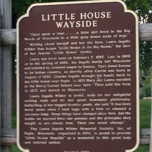 We stopped by at the recommendation of the small Laura Ingalls Museum in Pepin, WI. Self guided, site is small but gives you a sense of the little house in the woods. Well maintained. Picnic table at site. 7 miles outside town. I was imagining Pa walking to the town with his furs to sell. There is a board inside with a great deal of information on the timeline from the books.