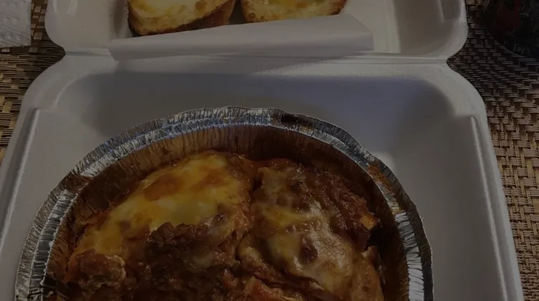 Phenomenal baked lasagna with cheese on the garlic toast!
