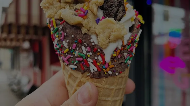 The soft serve itself was bland and a bit watery. The cones tasted and felt stale.The toppings were fun, and it's cool that they offer different "themes" everyday of different combinations you can easily order. The cones are served in another plastic cone, I'm guessing due to the stickiness of toppings? Maybe covid? Seems wasteful to me.Right now there's only outdoor seating. You order at a window and then it's brought out to you, or you can wait inside for your order with a mask on. Some people chose to wait inside since the walls are cute and make good pictures. There is not indoor-seating.