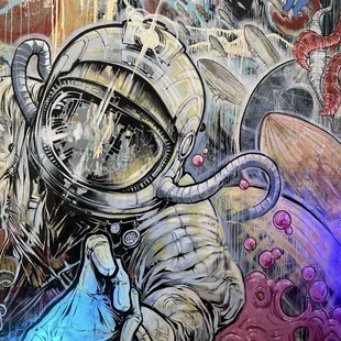 a colorful mural on the side of a building