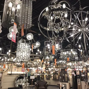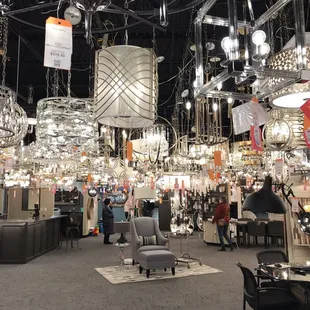 I came here with a friend to help her pick out lighting for her home. She needs overhead lighting for her bedroom, kitchen, and a fan/light combo for her sunroom. I happily joined to live vicariously through her life successes.And damn! I was blown away by how many beautiful fixtures there are! There was so much that was beyond my imagination. There were modern, vintage, mid-century, and luxury lights. Our style is mid-century modern, and we picked out a few that fit that aesthetic. Though, I would say there were just a few lights in the style. They were also somewhat limited on lighted overhead fan choices.But the best part was the customer service. We were able to build a "wish list" with an associate, where every item that piqued our interested was populated under her new account. There, you can review all of the details and customizations (like color, type of lighting, finish etc). There also seemed to be a lot on sale which was a treat!