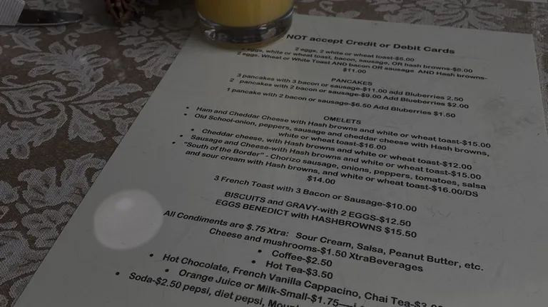 After passing by this little cafe and not going because they weren't open for diner, we decided to try it this morning for breakfast. OMG!! There were 4 of us and we all walked away full and very satisfied. The omelets were huge (can be downsized) and loaded with all your favorites. The pancakes were delicious and ginormoThe atmosphere was great and fitting with the era of the Old School. Service was outstanding and we had the foresight to purchase some of their home baked cookies for a snack later. Very Good. We will repeat soon and often. Remember, they are only open for breakfast and lunch and do not take any credit cards or cash cards. Bring cash. There is an ATM at the bank in town.