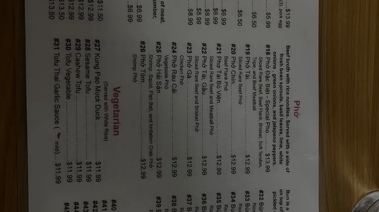 Excellent Vietnamese and Chinese food! Efficient pick-up service and got the order correct (we ordered many dishes for two different parties). The pho was DELICIOUS- my favorite. The broth is tasty by itself alone! Many ingredients included- when getting takeout, you will receive some meat uncooked so best to put it in the broth immediately and heat meat in both up a bit in microwave if needed - they do this to ensure freshness! The szechuan chicken dish is delicious as well and they provide the chili sauce on the side in case you don't have the best spice tolerance, which I appreciated! The beef and broccoli was good- broccoli very soft and tender, cooked well with the sauce. I liked the lo mein noodles although I loved the other dishes more. I liked how they were not very greasy like other takeout lo mein dishes can be- full of flavor and enough sauce that it does not overwhelm the dish!
