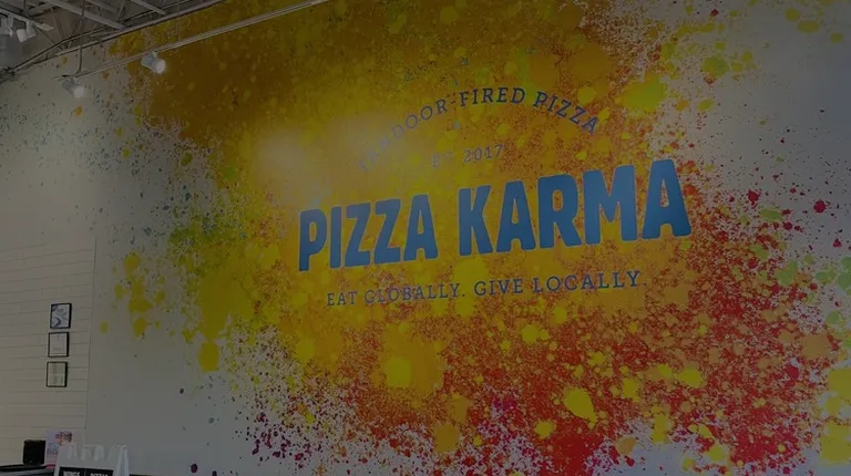 The smells this place emits is unbelievable.I am a big fan of the Tandoor oven and want to build one at my place some day.It's an art to cook in these things as I watched them bake our pizza and cook the wings.The young man working the tandoor was nice enough to explain to my younger kids what he was doing as he prepared the pizza to be baked.The Smokey flavor that this style of cooking offers is mouth watering.My sausage pizza was cooked to perfection and the crust and cheese took on some of the meat flavor as they cooked along side each others.This was very unique and overestimate an amazing taste.I will be going back to Pizza Karma as the flavors,service and ambiance were on point!