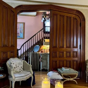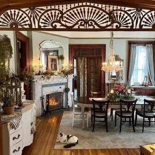 Oh my god, where to even start? First and foremost, DETAILS. This place is FULL of just the most amazing details and who would ever think of these things (down to even the outlet covers!)?It's all Deb. Deb has to be the coolest innkeeper I have ever met- you know how you expect a dilapidated, creepy old gone-to-seed person who is supposed to be like "DO NOT SIT ON THE FURNITURE! DO NOT TOUCH ANYTHING! DO NOT LOOK ME IN THE EYE!"... Deb is the polar opposite of this. She encourages you make yourself at home, chill out and relax. She brings you wine and sticks around to talk, enjoy the house with you, and share everything she knows about fixing up houses and historical stuff that's cool to hear. You feel like a friend staying for a weekend, not just a guest or an imposition. And Deb is not alone! Max, the most amazing cat I have ever seen, is her sidekick. He is gigantic (a Ragdoll, I think) and he's so sweet! We would come downstairs in the morning before breakfast and Max would come say hello, tail swishing and his big blue eyes begging for lots of attention (and don't worry if you're allergic- Ragdolls and most other large cats don't shed in the same way smaller cats do so reactions are pretty much nil.)The house itself is beautifully restored and furnished in the kitschy-est, coolest fusion of sumptuous antiques and sweet vintage; we stayed in the Autumn room, where the furniture is not quite Victorian, but still gives an elegant Victorian feel (and the leopard print sheets were just a little touch of sauciness that really made me feel at home.)Every room is like that: the living room has comfortable furniture but you know it's lived in- this is a house through and through, not an artifact emporium. The dining room is an antiquer's wet dream and Deb's got all the details down here- old liquor decanters, a hutch full of vintage china, and the chandelier~ oh man! Dreamy! The kitchen is also very comfy and you can tell that a lot love has gone into it- even the flour and sugar have beautiful vintage coffee jars to live in.Deb's breakfasts are also super homey and delish. I've never had dessert at breakfast before, but makes a gorgeous custard with balsamic reduction and raspberries- if you stay here, mention it... It's too good to miss out on! And the food is all served from the most gorgeous vintage serving dishes and you eat off beautiful plates, drink from water goblets, and have tea in sumptuous tea cups.Absolutely my favorite place to stay ever. Red Wing itself may close up around 5pm even on a Saturday, but you will not care. You will want to stay indoors and enjoy being in truly a home away from home. (Pratt-Taber's off-season rates are also super reasonable for being such a gorgeous place!)