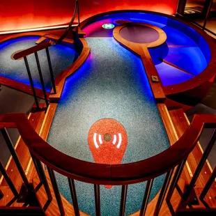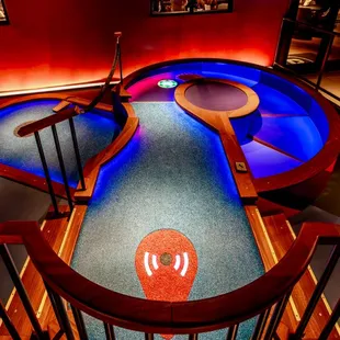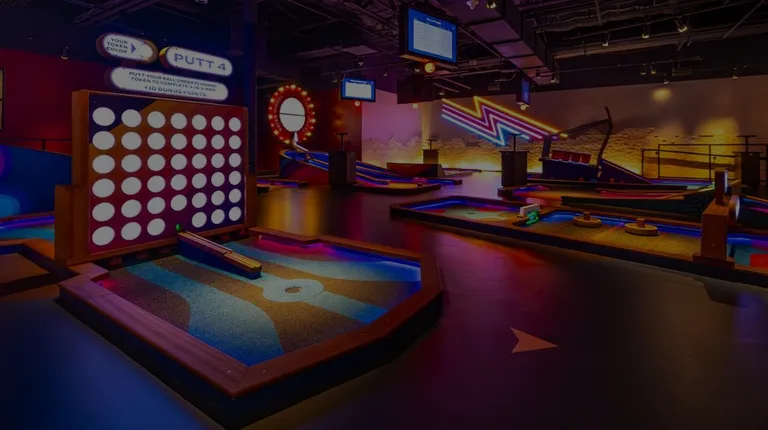 I love mini golf so I had to try this spot out. Its in the South Dale mall so plenty of parking. You can see all the lights from the parking lot, so easy to find.Walked in at 8pm and they closed at 10pm. People were gathering their coats at coat check so me and my date waited to check ours in and the guy said he was no longer doing coat check. Mind you, were in Minnesota during winter, we both had on big coats lol.This was my first time there, he did walk us upstairs and help us check in. Pretty easy process. There's 4 courses, we walked up to a few and no one was working to actually get us started so we had to walk back to the guy from coat check to help us get started on the course.Once we started playing, the course was super fun and like no other mini golf I'd played. Its a point system not just based on hits and each hole had different objectives to get points. Great experience playing for sure.We didn't try any food or drinks since we already had dinner, maybe next time. I would have loved to give this place 5 stars cause I think the course was super fun, but from having to wear our coats through the course, the confusion on even getting started to play, that definitely made the experience less than. The pricing per course isn't terrible, but if you want to play a few, it adds up. I will definitely go during the week when they have discounts. Hopefully my next experience is much better cause the course is worth going back for.