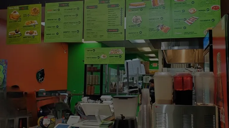 The Tacos were a 4.5, the environment was tacky, didn't look that inviting 3.5, The help was fine , difficulty understanding her 3.75, the Street Taco while good 4.25, no Salsa, the Fish Taco 4.1( 1 ounce of some kind of fish.Chips a Salsa were a Side..El Parisen , on 42 down the road Hands down is a much better option! Clean, good English , Great Chips an Sala FREE... While not a Bust, I'm not seeing a 4.5 !!! 3.75/???