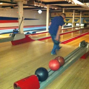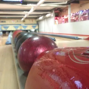 Hmmmm, I don't know bowling but there is a large selection of balls running along the outside of the bar seating area