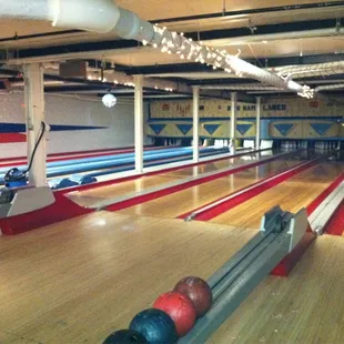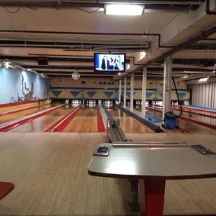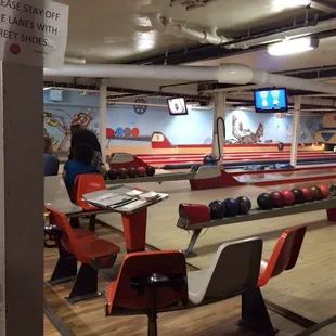 Old school lanes! Disco ball and Christmas lights. We loved it! You keep your own score here on giant sheets of paper. Thankfully, I know how to do this. Forgot fancy and think nostalgic. I have only seen one other Center like this before in my life. It may be small, but it's bursting with fun and charm!