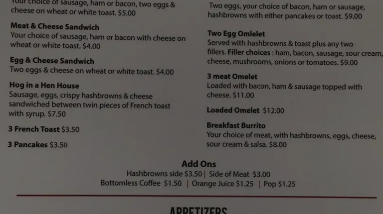 The Barnyard Omelet was a doozy! My husband and I shared it and he had a side of pancakes. The pancakes were nothing to rave about so skip them for other options. Very polite and prompt service.