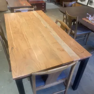 Mid Century Blonde folding card table with canvas top (In store as of 6/9/18)