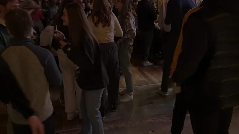 Came here from out of state while a friend was showing me around. Arrived around 5 or 6 pm on a Thursday and when I first walked in, it felt like chaos. There were people standing and sitting everywhere. It was so loud from the amount of people I felt like I had to yell across the table. It was self seating I think. I couldn't even tell, we just walked straight to a table and had to fight for one that had dirty glasses still on it and for people to leave. They seemed pretty understaffed for the amount of customers that were in the restaurant but we still got great service from the poor girl who seemed like she had to take care of half of the restaurant. The only thing we ordered were the Thursday special of $10 2lb bucket of wings. That was the only thing that was worth it. Just expect college kids everywhere since it's next to the university.