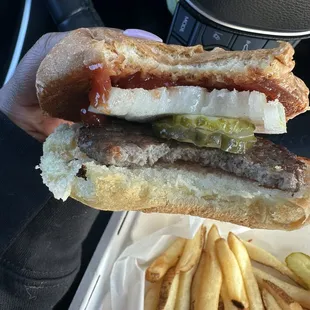 Ordered a burger, fries, and butterfinger malt to go. All of which were average, didn't seem to have any flavors or features that set it apart from average fast food restaurants. The service was meh...not sure that I saw the cashier smile at all, felt a bit rushed. This place is quite small and vintage but can be okay for small groups. Decent amount of parking.