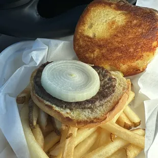 burgers and onion rings