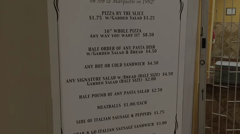 I would eat at Sorrento's even if the food was mediocre because the people who work here are THAT nice. It's very clear that they take pride in their food and want you to have a great lunch.But the food is NOT mediocre. It's quite possibly the best food I've had in the skyways, and it's pretty cheap too. I love the double-crusted spinach pizza, which comes slathered in some exceptionally tasty red sauce. I also really love the Chicken Sorrento with mashed potatoes and this buttery garlic sauce. I had to make myself stop eating the mashed potatoes to prevent gaining three pounds and/or falling asleep at my desk. The vegetarian lasagna and the shells are also very good.Tip: Get a to-go container and take back the leftovers for tomorrow's lunch. You can order half-portions of the pasta dishes, but it's much more cost effective to order a whole order and eat the rest tomorrow. And trust me, you'll need to eat the rest tomorrow.Some of my office lunch companions have some pretty big appetites, but I've never seen anyone finish a whole order at Sorrento's.