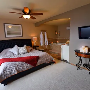 Stone Lion Vineyard B&B is a gorgeous quiet home that provides a lot of privacy! We were able to escape from the everyday realities and miander through the vines as well as relax in our very romantic suite with it's own jacuzzi tub within our room. I love the fireplace, which just makes the suite cozy. We get out to Napa very often and this property in it's entirety is the closest thing to a California vineyard we've ever seen. The bed was very comfortable and the linens are soft and smelled so fresh! We appreciated the options that Kathy provided for breakfast and the opportunity to eat in our spacious suite, or join others for some fun conversations. The food was delicious and I highly recommend the stuffed apple french toast. Dave and Kathy are very hospitable. The flowers, cheese and wine were a nice touch! These folks will make any special occasion memorable!