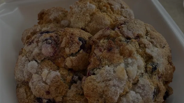 Carmel apple, white chocolate blueberry, and white chocolate mixed berry scone. Blended Mayan mocha! All very good!