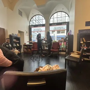Great ambiance and great service! This place is huge! Come in with work to do it makes you want to get some work done. Great vibes! There's so many books in their selection. The authors are diverse and plentiful. Everything is well priced and a great value!