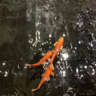 two koi fish swimming in a pond