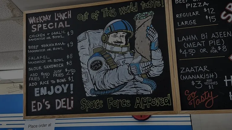 You can find Ed's Deli inside Super USA convenient store, and man what a surprise it was for me. Father and son team that are the most genuine and kindest people ever. I ordered quiet a few things, Zaatar Manoush, Meat Manoush, beef shawarma bowl, Sujoc pizza, hummus, taboule, and Ashta for dessert. I was planning on taking all of this to go, but I wanted to try a bite of the meat manoush, it was so good, i couldnt stop eating it. Little do you know, 10 minutes go by, and Im down a meat manoush, zaatar manoush, and ashta dessert. The food is obviously made fresh and made the right way. Im so glad I found Ed's Deli. Will 1000% come back alot more